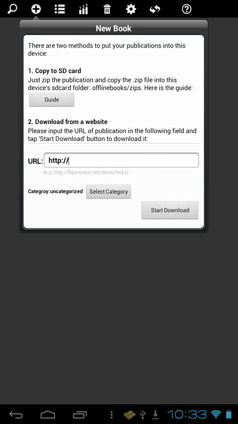 Just input the URL of publication you want to download and tap "Start Download". A thumbnail for this publication will be created on the Library interface and the download will be started immediately.